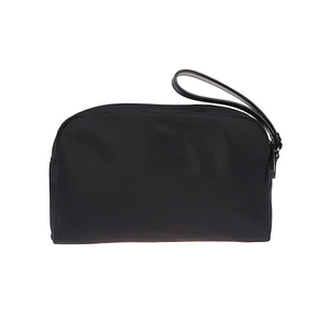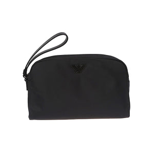 Beauty bag in recycled nylon, with zip closure and practical wrist strap. The design is linear and contemporary, with an extremely urban appeal, for a line of items in nylon, made with recycled material, with details in regenerated leather and a shaped metal eagle logo. Logo nylon beauty-case Size and Fit - Width 9,25 in / 23,5 cm Height 2,56 in / 6,5 cm Depth 5,71 in / 14,5 cm