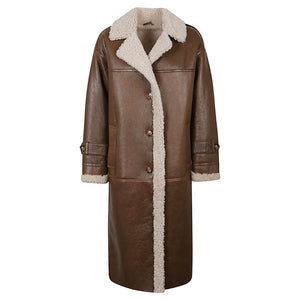 Camel whipping, with buttons closure, two oblique pockets, long, decorative buttons on the wrists, V -neck. Benedicte sheepskin long jacket Size and Fit - This piece fits true to size. We recommend you get your regular size. Model is 1,75m / 5ft 8in wearing size 36 (FR)