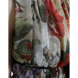 Gorgeous brand new with tags, 100% Authentic Dolce & Gabbana beige mini dress with colorful floral prints. Airy silk chiffon and sleeveless
