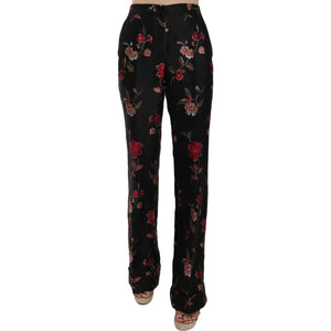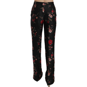 Dolce & Gabbana Floral Print Black Boot Cut Trouser Pants