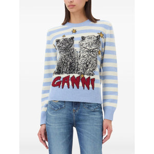 blue pinstripe pattern ribbed band collar long sleeves embroidered logo to the front ribbed cuffs and hem Embroidered striped wool sweater Size and Fit - This piece fits true to size. We recommend you get your regular size. Model is 1,75m / 5ft 8in wearing size S