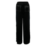 black velvet straight leg elasticated waistband two rear patch pockets two diagonal pockets to the sides Velvet wide-leg trousers Size and Fit - This piece fits true to size. We recommend you get your regular size. Model is 1,75m / 5ft 8in wearing size S