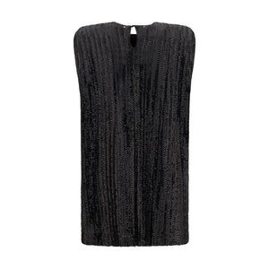 The Sequined Mini Dress by Golden Goose is a bold and sparkling piece perfect for special occasions. The sleeveless design and classic crew neck offer an elegant, understated cut, while the padded shoulders add structure and a tailored touch. The back button closure completes the design, keeping the silhouette clean and refined. The sequin design gives the dress a bright, modern effect, making it ideal for those seeking a glamorous look with a contemporary twist.