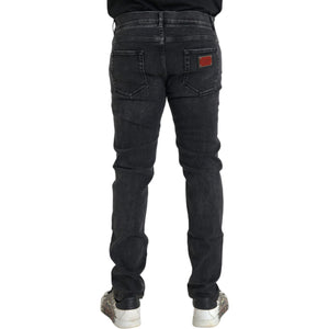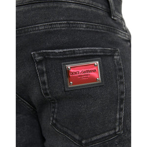 Dolce & Gabbana Gray Cotton Stretch Skinny Denim Logo Jeans