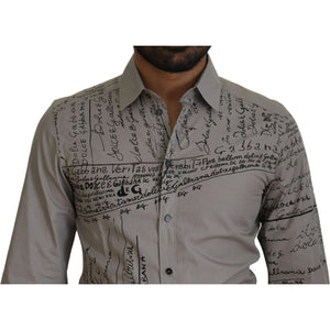 Dolce & Gabbana Gray Printed Cotton Slim Dress GOLD Shirt