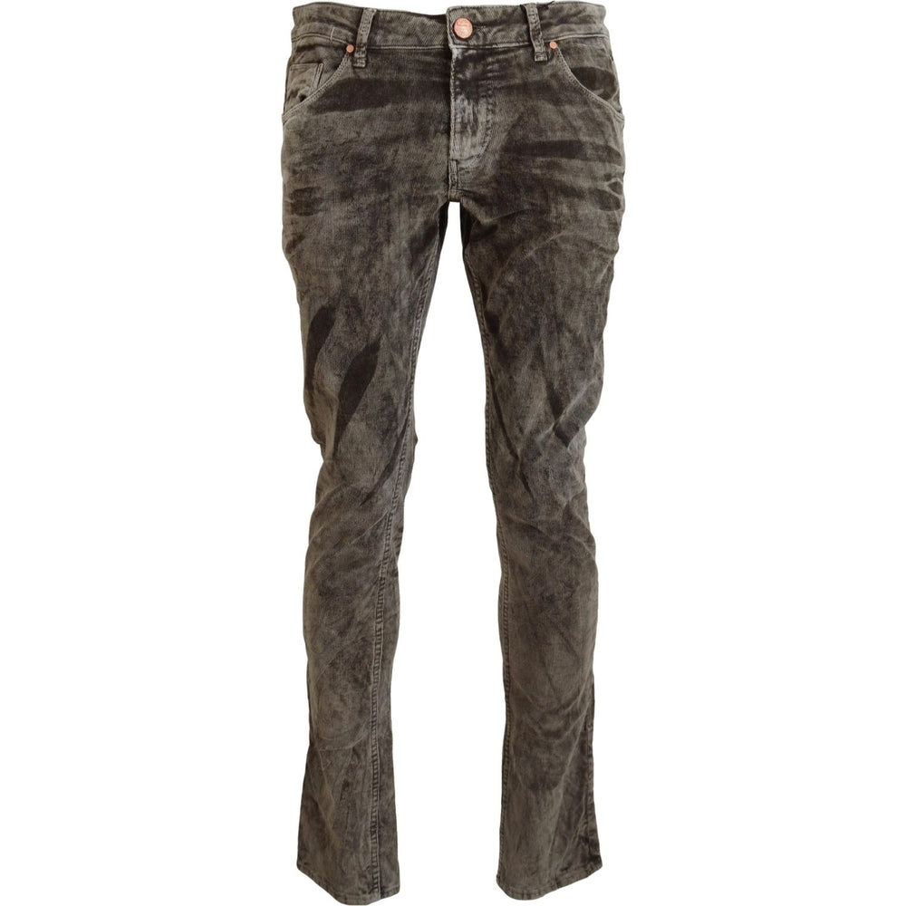 Acht Gray Washed Cotton Corduroy Slim Fit Men Jeans