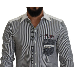 Dolce & Gabbana Gray White Striped Slim Fit Shirt