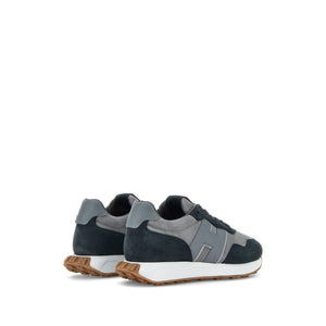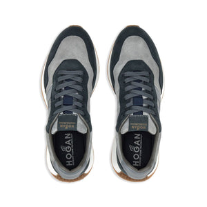 blue calf suede front lace-up fastening logo patch to the side logo patch at the tongue panelled design round toe branded insole flat rubber sole H601 leather sneakers Size and Fit - Heel 1,8 in / 4,5 cm