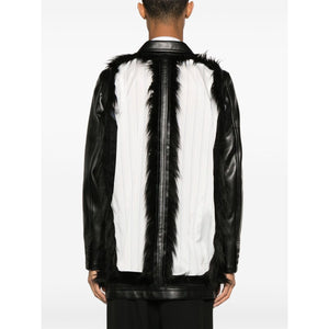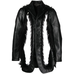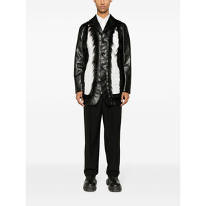 black faux leather faux-fur trim cut-out detailing notched lapels front button fastening long sleeves buttoned cuffs straight hem Cut-out detail single-breasted jacket Size and Fit - This piece fits true to size. We recommend you get your regular size. Model is 1,84m / 6ft 1in wearing size M