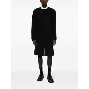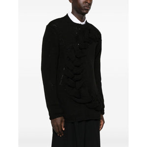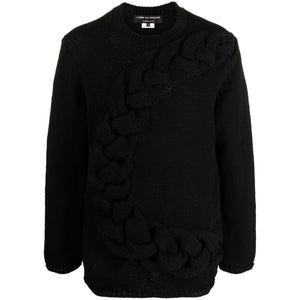 core black chunky cable knit crew neck drop shoulder long sleeves ribbed cuffs and hem Cable-knit crewneck sweater Size and Fit - This piece fits true to size. We recommend you get your regular size. Model is 1,84m / 6ft 1in wearing size M
