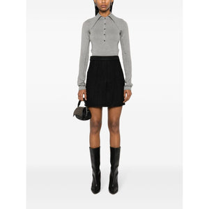 black cotton blend knitted construction elasticated waistband front slit straight hem Knitted mini skirt Size and Fit - This piece fits true to size. We recommend you get your regular size. Model is 1,75m / 5ft 8in wearing size 36 (FR)