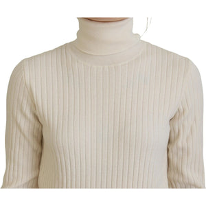 Dolce & Gabbana Ivory Turtleneck Distressed Cuff Pullover Sweater