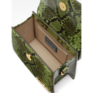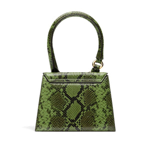 forest green calf leather snakeskin effect gold-tone logo lettering logo-engraved gold-tone hardware single rolled top handle adjustable detachable shoulder strap foldover top with magnetic fastening main compartment suede lining internal slip pocket Le Chiquito Moyen Boucle leather handbag Size and Fit - Width 5,31 in / 13,5 cm