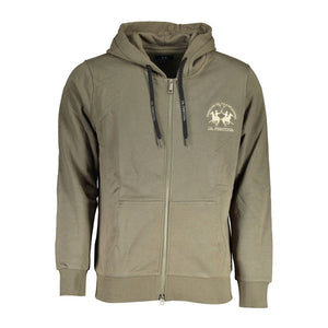 La Martina Green Cotton Men Sweater with Hood and Zip Pockets