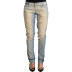 Acht Light Blue Washed Cotton Low Waist Skinny Denim Jeans