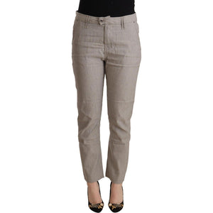 CYCLE Light Gray Linen Blend Mid Waist Tapered Pants