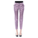 Unleash your inner fashionista with these stunning BYBLOS pants, crafted to turn heads and elevate your style game. These trousers feature a chic purple hue that adds a pop of color to any outfit, while the sophisticated blend of cotton and silk ensures comfort and luxury with every wear. Perfectly tailored with two front and two back pockets, they come adorned with a personalized BYBLOS button that adds an exclusive touch to this designer piece. Make a statement in these pants that marry comfort with high-end style.