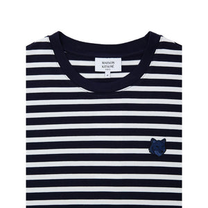 Blue Striped Sweater with Maison Kitsuné Embroidery.