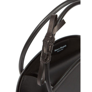 black calf leather smooth grain magnetic fastening two top handles bow detailing signature four-stitch logo main compartment metal feet This piece comes complete with a protective dust bag. Fortune small leather handbag Size and Fit - Width 33 cm Height 22 cm Depth 15 cm