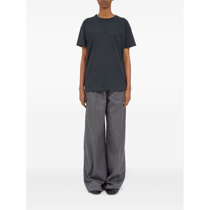 beluga grey cotton jersey texture embroidered logo to the front signature four-stitch logo crew neck drop shoulder short sleeves straight hem Logo cotton t-shirt Size and Fit - This piece fits true to size. We recommend you get your regular size. Model is 1,75m / 5ft 8in wearing size S