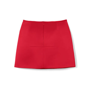 red satin finish bias cut rear zip fastening dart detailing side slit above-knee length Duchess satin skirt Size and Fit - This piece fits true to size. We recommend you get your regular size. Model is 1,75m / 5ft 8in wearing size 4 (US)