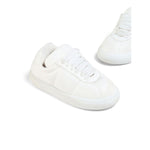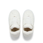 white leather padded design logo-embossed tongue branded heel counter round toe front lace-up fastening branded leather insole flat rubber sole Bigfoot 2.0 leather sneakers Size and Fit - Platform 1,6 in / 4 cm