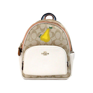 COACH Mini Court Signature Pear Motif Shoulder Backpack Bookbag Bag Chalk Taffy