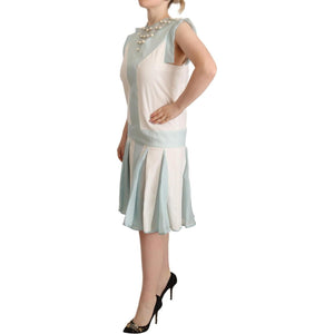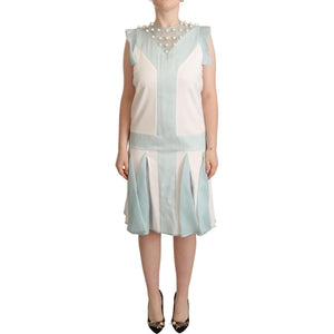 Sergei Grinko Multicolor Faux Pearl Sleeveless Shift Midi Dress