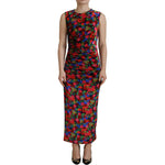Dsquared² Multicolor Floral Bodycon Ruched Maxi Dress