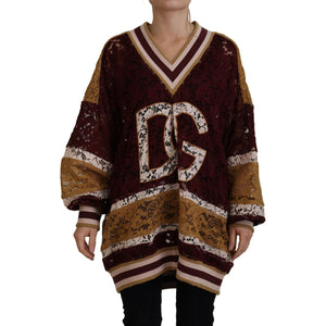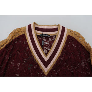Dolce & Gabbana Multicolor Lace V-neck Pullover Sweater