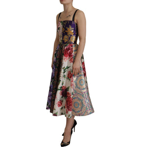 Dolce & Gabbana Dress Midi Patchwork Floral Jaquard Silk
