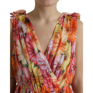 Dolce & Gabbana Multicolor Sunflower Print Silk Midi Dress