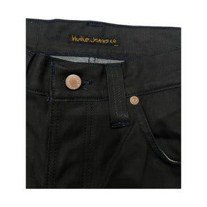 Indulge in the epitome of contemporary style with Nudie Jeans’ slick coated fabric jeans. A modern classic redefined, these jeans boast a sleek black hue and an attention-grabbing 4-button closure that’s sure to turn heads. Practicality meets panache with a set of front pockets complemented by a refined small pocket, whilst the rear welt pockets uphold sophistication. The quintessential Nudie Jeans’ logo patch on the back commands respect, and the contrasting stitching delivers an edgy finishing touch to this bold fashion statement.