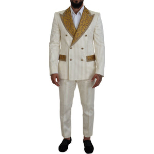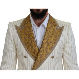 Dolce & Gabbana Off White Gold Striped Tuxedo Slim Fit Suit