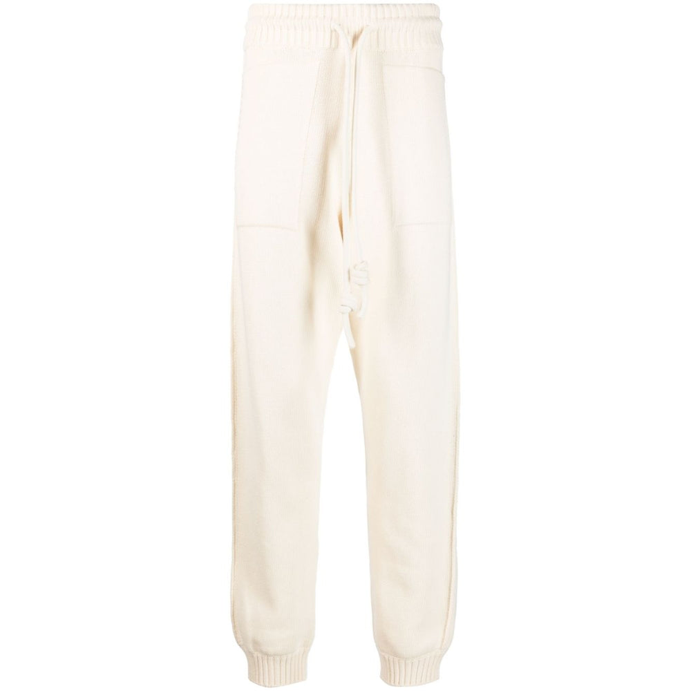 Diag-stripe knitted track pants from OFF-WHITE featuring light beige, cotton, knitted construction, signature Diag-stripe print, ribbed drawstring waistband, two side inset pockets, rear patch pocket, straight leg and ribbed ankles. Cotton sweatpants Size and Fit - This piece fits true to size. We recommend you get your regular size. Model is 1,84m / 6ft 1in wearing size M