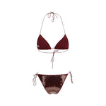Oséree’s Marylin Swimsuit is a bright take on the classic triangle bikini. Lacing at the neck, back, and hips ensures an adjustable and comfortable fit, while all-over sequins enhance the silhouette with bright highlights and a touch of glamour.