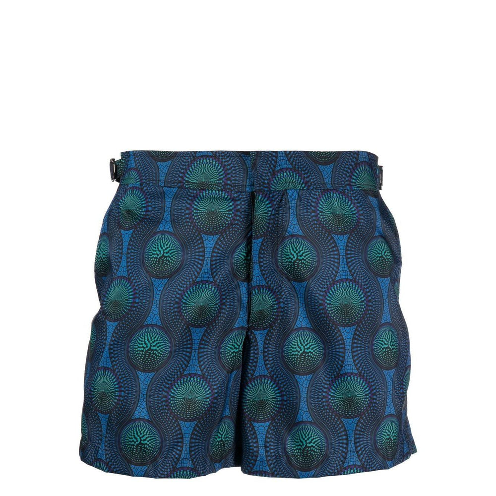 mosaic-print swim shorts from OZWALD BOATENG featuring side buckle fastening, straight leg, knee-length, blue and mosaic print. Be mindful to try on swimwear over your own garments.. Printed swim shorts Size and Fit - This piece fits true to size. We recommend you get your regular size. Model is 1,84m / 6ft 1in wearing size 32 (WAIST CM)