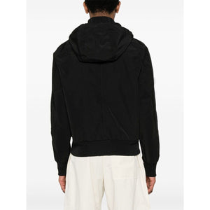 black, ecru shell toggle hood internal high neck embroidered PA monogram at the chest long raglan sleeves with knitted stripes ribbed cuffs two front zip fastening pockets ribbed hem full lining branded zip puller gunmetal-tone hardware authenticity QR code front zip fastening Monogram track jacket Size and Fit - This piece fits true to size. We recommend you get your regular size. Model is 1,84m / 6ft 1in wearing size M