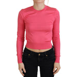 Dolce & Gabbana Pink Silk Cropped Crewneck Pullover Sweater