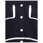 The Pinko Cardigan is a garment with a retro and refined taste. Defined by contrasting profiles, it is completed by a classic collar, front closure with buttons, ribbed hem and cuffs. The two patch pockets on the front add a practical and decorative touch.