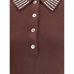The Emilia Sweater with rhinestones by Pinko reinterprets the classic polo model with a touch of sparkle. Featuring a rhinestone-embellished collar, it has four buttons on the front, short ribbed sleeves and a ribbed hem, for a casual yet sophisticated look.