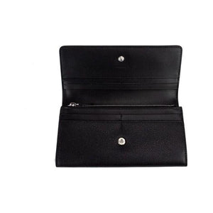 Burberry Porter Black Grained Leather Branded Logo Embossed Clutch Flap Wallet