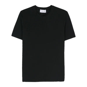 black cotton blend jersey texture tonal stitching crew neck logo print to the rear short sleeves straight hem Logo cotton blend t-shirt Size and Fit - This piece fits true to size. We recommend you get your regular size. Model is 1,84m / 6ft 1in wearing size M