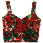 Dolce & Gabbana Red Geranium Print Viscose Sweetheart Cropped Top