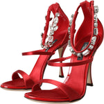 Dolce & Gabbana Red Keira Satin Crystals Sandals Heels Shoes