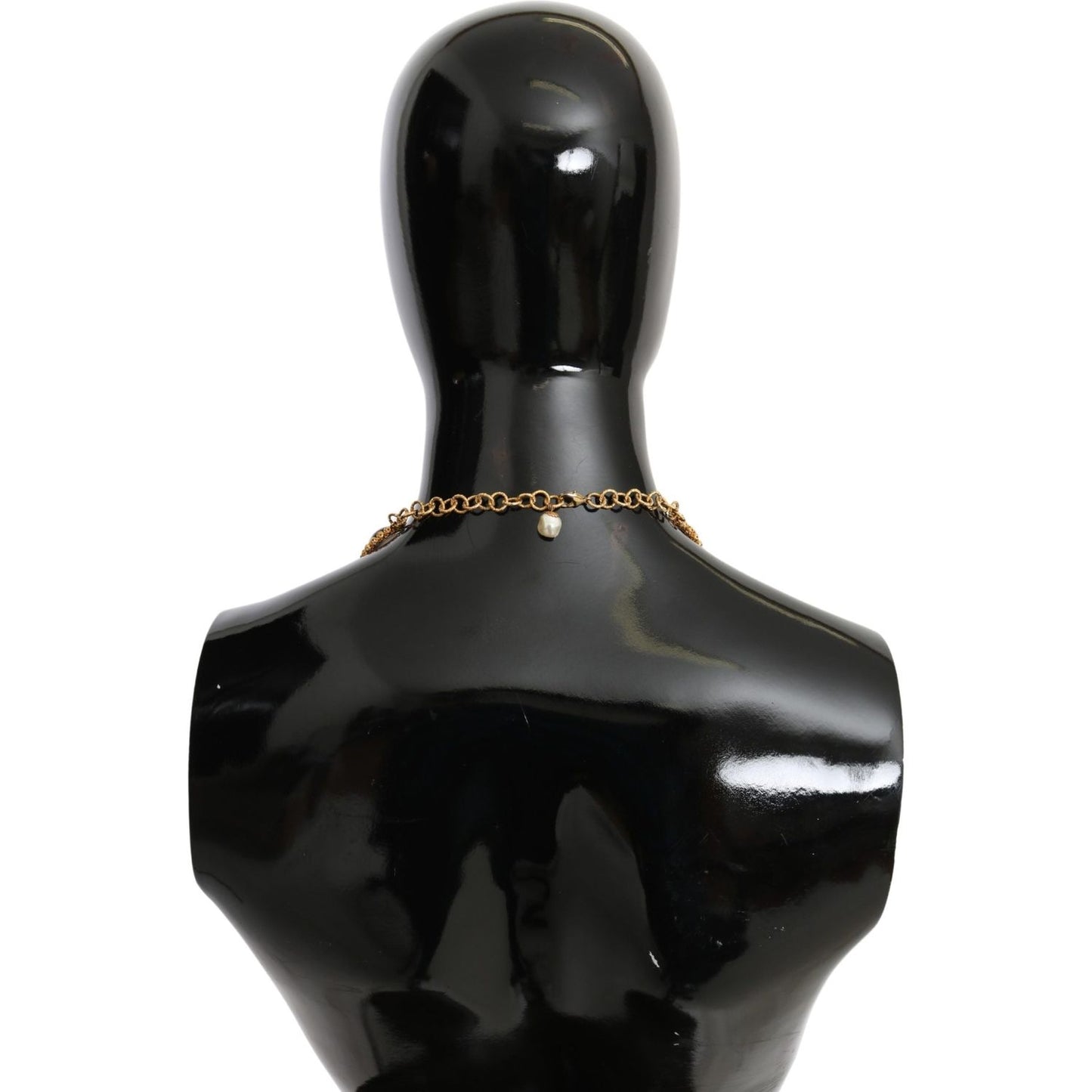 Dolce & Gabbana Red Purple Crystal Floral Chain Statement Gold Brass Necklace