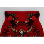 Dolce & Gabbana Red Silk Crystal Roses Shorts