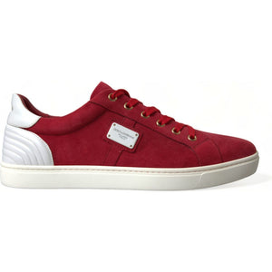 Dolce & Gabbana Red Suede Leather Men Low Top Sneakers Shoes