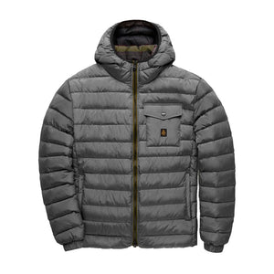Embrace the chill with the unmistakable Refrigiwear Hunter Jacket, a staple for any fashion-conscious individual braving the elements. This men’s nylon down jacket is a fortress against the cold, featuring a secure double slider zip and a variety of pockets—side zips to safeguard your essentials and a buttoned chest pocket for quick access. The fixed hood stands as your first line of defense, while the substantial 90-10 down padding ensures warmth without compromise. Treated to be water-repellent and wind-resistant, it is your stylish shield in urban expeditions.
