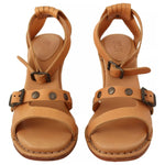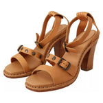 See By Chloé Brown Leather Studded Ankle Strap Sandals Shoes